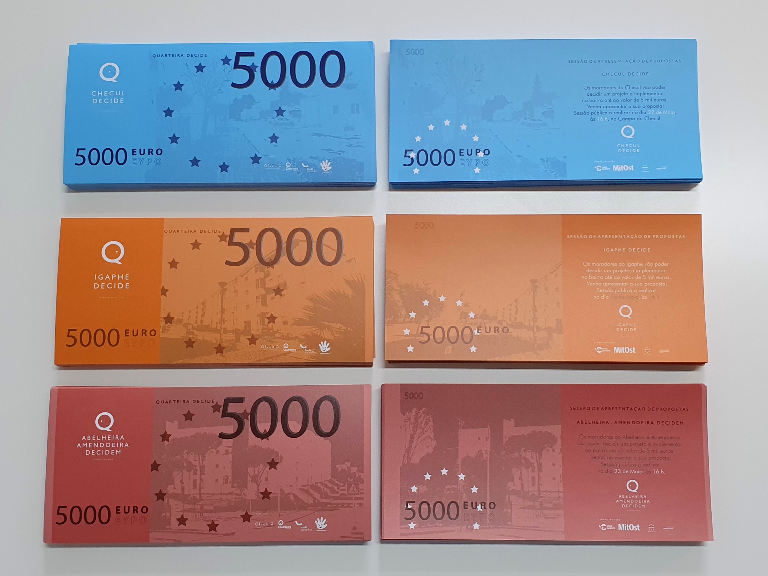 Each of our neighbourhoods will have 5,000 euros to apply to projects proposed and decided by the community. We have therefore decided to print notes to distribute in each neighbourhood. We hope we will not be prosecuted by the European institutions :)