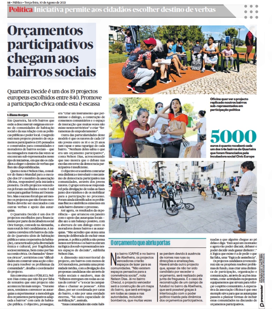The Quarteira Decides project deserves national recognition in today's edition of Público, Portugal's leading newspaper.